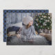Cartões de Natal personalizados de xadrez de búfalo azul-neve com excesso de neve e um título de fonte de script sobre uma foto. Personalize facilmente estes cartões azuis de Natal com fotos da neve com sua imagem e seu nome familiar.