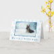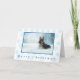 Um cartão de Natal da cena do inverno do german shepherd no azul do inverno com neve lasca-se.