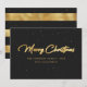 Folha de ouro e preto personalizado elegante Cartões de Natal Merry com confete de ouro na frente e listras pretas e douradas com confete de ouro na parte de trás do cartão. O efeito da folha de ouro só é simulado no trabalho de arte.