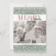 Comemore a temporada com um cartão de Natal personalizado com fotos de sua família favorita. Este cartão impresso mostra um design verde e rosa moderno com detalhes elegantes e um padrão correspondente. Perfeito por enviar desejos calorosos a amigos e entes queridos neste Natal!