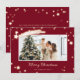 Cartões de Natal personalizados, com fotos vermelhas, com um roteiro manuscrito e estrelas em fundo vermelho. Personalize facilmente estes cartões vermelhos estrelados de Natal com a sua imagem favorita, um nome de família e texto.
