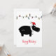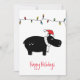 Ilustração de hippo negro Whimsical com chapéu vermelho de Papai Noel, uma sequência de luzes de feriado e texto personalizável de "Feriados Felizes"