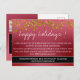 O Cartão postal de Férias do Agente Imobiliário do Cartões de natal apresenta fundo vermelho de Natal, brilhos de ouro, modelo de foto e texto na moda.Um design perfeito para agente imobiliário, construtores e corretores.Clique no botão personalizar para personalizá-lo com seu texto e foto.Visite gentilmente minha loja " loveyouart" para outros designs ou similares.