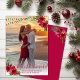 Cartões de natal de Natal Mele Kalikimaka. Este design de cartão de feriado moderno apresenta uma tipografia vermelho-burgundy que cumprimenta "Mele Kalikimaka", arranjos florais tropicais vermelhos ou arrojados nas duas esquinas e luzes de cordas de natal. Nos arranjos florais de fundo de cor burgundy. Você pode personalizar o design substituindo o texto do exemplo e a foto vertical do cheio. #3352 Se precisar de ajuda ou itens correspondentes, entre em contato comigo!