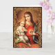 Aqui está um belo "Corações Imaculados" do Cartão Madonna e Criança. O Jesus loiro senta-se calmamente no colo da Santa Mãe. A Virgem Maria está vestindo túnica vermelha e azul e ela e o bebê Jesus estão segurando corações assustados. A fotografia é decorada com uma delicada armação de ouro. É um belo cartão religioso de Natal para aqueles que ainda celebram o verdadeiro significado do Natal. A família e os amigos ficarão certamente encantados por receberem um cartão tão bonito. A dentro do cartão diz: "Bênçãos de Natal", mas pode ser personalizada conforme necessário. Feliz Natal.