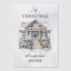 Renderização quente e artística de uma confortável casa coberta de neve com decorações de Natal e "No Natal, todas as estradas levam para casa", citação em texto personalizado.