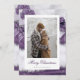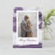 Cartões de Natal com fotos púrpura personalizadas, com um título de letra de script elegante, e um quadro fotográfico com presentes de Natal e neve caindo. Personalize facilmente estes cartões de Natal de fotos antigos com a sua fotografia e o seu nome de família. Crie um cartão de Natal mágico e roxo para sua família e amigos nesta temporada de festas.