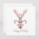 O cartão festivo de natal quadrado apresenta a cabeça de veado com galhos vermelhos, canas doces cruzadas e texto personalizável de "Feliz Feriado". Disponível nos formatos de download digital instantâneo e impressão.