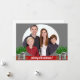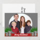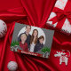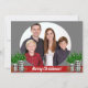 Esses cartões de Natal personalizados rústicos e modernos permitem que você adicione sua própria foto de família ou grupo que aparecerá como um recorte de foto circular, com potes Mason cobertos de xadrez rustico de búfalo segurando pequenas árvores de Natal iluminadas e pinhas, em um fundo cinza médio. Personalize o texto "Feliz Natal" na frente, bem como a saudação no verso.