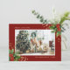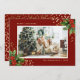 Cartões de Natal com foto vermelha elegante e cor d'água, contendo uma foto vermelha decorada com ilustrações de cor d'água de holly com bagas e falso formato de folha de ouro. Personalize facilmente esses Cartões de foto de Natal vermelhos com sua imagem e texto.