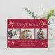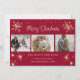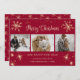 Cartões de Natal vermelhos personalizados com flocos de neve e estrelas na frente e flocos de neve brilhantes na parte de trás. Personalize facilmente estes cartões vermelhos de Natal com as suas imagens, texto e nome de família.
