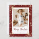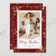 Cartões de Natal vermelhos, personalizados, com flocos de neve, estrelas e neve caem sobre fundo vermelho. Personalize facilmente estes cartões vermelhos de Natal com a sua imagem, texto e nome da família.