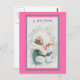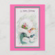 Menina absolutamente adorável em um casaco verde-vintage com trim branco de pelo e chapéu branco de pelo. Ela fez a coleira aparecer como neve se caísse para trás. Ela tem flores de Natal vermelhas e verdes decorando o chapéu. "Olá, Feliz Natal" no topo. Bordas cor-de-rosa e verdes.