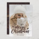 Cartões de Natal com fotos de madeiras rústicas personalizadas, com uma foto com uma camada de neve e uma letra manuscrita em texto escrito na frente e em madeira rústica, com neve na parte de trás. Personalize facilmente estes cartões de Natal com fotografias rústicas com a sua imagem e o seu nome familiar.