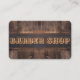 Cartões de visitas de madeira da barbearia do olhar do celeiro ocidental velho. Onde é o barbeiro engates de Pólo e de cavalo? Olhar rústico toda a maneira