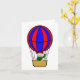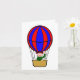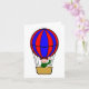 Andar num balão de ar quente é muito divertido. Você está flutuando. Este design apresenta um balão de ar quente com aparência de excelente. O balão em si é vermelho e azul. No cesto está uma pessoa solitária que está sorrindo e acenando. Este design de balão de ar quente parece excelente nestas placas