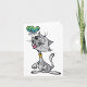Uma design linda de um gato sentado olhando para cima de uma borboleta que está voando bem acima do nariz. O gato é cinza e tem a língua rosa para fora e parece muito feliz com o mundo. A borboleta é adorável e voa logo acima do gato. Este gato e uma design de borboleta parecem excelentes nessas cartas