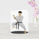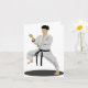 Ataca uma pose de karatê incrível como esta. Esta pessoa está lá em uma roupa de karatê e eles estão em uma pose de karatê. Este caratê está vestindo um cinto preto. Este design de caratê parece excelente nestas placas