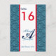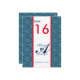 Este é um cartão de número de mesa. O padrão deste cartão é Damask. A cor deste cartão é azul.