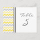 Elegantes e modernos cartões de número de mesa de casamento em amarelo limão brilhante, cinza e branco com um padrão de zigue-zague xevron retrô e divertido. Personalize esses cartões para criar cartões de número de mesa personalizados para cada mesa em seu casamento. O padrão está disponível em uma ampla gama de produtos de casamento correspondentes.