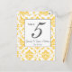 Cartões de Número de Mesa com cores de damasco branco e amarelo e sotaques cinzas. Design de Layout por Elke Clarke©. Gráficos licenciados. Personalize com suas informações e faça um cartão com cada número e adicione um cartão por número ao nosso carrinho. O belo fundo de damasco amarelo e branco pode ser combinado com qualquer cor selecionando "personalizá-lo" e, em seguida, você pode alterar a cor do texto, da linha da moldura e da caixa de fundo para combinar com a paleta de cores do seu casamento.