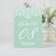 Cartões de Número de Mesa de Noiva em Renda de Brocado Verde-Menta
