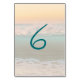 Cartões de número de mesa com imagem de fundo do nascer do sol no oceano. Os números serão impressos em ambos os lados para serem facilmente vistos de qualquer parte da sala. Os números devem ser adicionados um de cada vez e adicionados ao seu carrinho. Clique no item no carrinho para voltar ao produto e alterar o número para o próximo cartão.