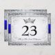 Cartões de Números de Tabela de Casamento Fairytale de ornamentado. Apresentando cores de realeza real de azul e prata e pedreiras. Este cartão postal de conto de fadas clássico e sofisticado é excelente para qualquer casamento temático ou casamento de gravata negra. Trazendo um pouco de elegância e charme, você vai enviar saudações aos seus hóspedes em estilo especial com este obrigado de casamento de conto de fadas que você faz para todos os seus convidados. Tem pérolas falsas e diamantes nos floreios que estão nos cantos. Uma coroa real senta-se na parte inferior direita adorada com prata e joias. Uma ilustração de árvore se senta sobre um fundo de safra e uma borda de ornamentado segura o meio texturizado do papel do ornamentado. Os produtos correspondentes podem ser encontrados na seção de casamento da minha loja.