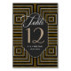 Tema da cor: textura da brilho de ouro de bronze. Linhas simples quadradas geométricas dentro de um padrão quadrado. Estilo: Arte Deco, era ruidosa dos anos 20, energia musical de Charleston. Individual personalizável para cada lado. Número no lado e menu no outro? Personalize-o exatamente como você quer. Este design da placa de mesa tem o número em ambos os lados da placa | designs alternativos adequados para casamentos não tradicionais, almofadas de negócios, eventos empresariais ou para qualquer evento e ocasiões especiais de decoração de mesas.