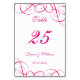 Design moderno e elegante imprimiu números de tabela de casamento Fucsia Swirls que podem ser personalizados com seu texto e adicionar cada cartão de número de tabela ao seu carrinho, um a um. Veja a Design de Arte Gráfica para outros produtos que combinam com este design!