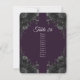 A floral de cinzas escuras e elegante com placas de assentos de mesa de fundo roxo escura são adoráveis para uma aparência de casamento gótica com um fundo preto. As flores adornam os cantos de um olhar elegante, moderno e sofisticado.