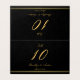 Elegante preto e dourado cartões com números de tabela dobrados em ouro (tenda horizontal). As dimensões das placas são 2 polegadas x 3,5 polegadas (dobradas) e 4 polegadas por 3,5 polegadas (desdobradas).