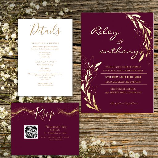 Elegante Burgundy de casamento real e cartões de ouro da mesa de casamento... tudo é feito para você personalizar facilmente todo o texto.
