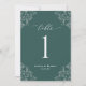 Elegante Números de Tabelas de Casamento Verde Emerald: Use esses números de tabela clássicos e vintage na sua recepção de casamento ou evento. Este design apresenta a palavra "Mesa" em uma caligrafia elegante com um design de ornamentado vintage para um olhar luxo. Está definido em verde esmeralda, mas você pode mudar a cor para qualquer coisa que quiser! Basta clicar em "personalizar mais" e alterar a cor de fundo.