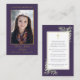 Cartões de oração memorial de simpatia de funeral com foto com folhagem verde botânica em aquarela em um fundo roxo que enquadra a oração. Você pode personalizar com a oração escolhida, se preferir. Criado por Thisisnotme©