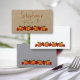 Cartões de outono, de local plano para um janto de Ação de Graças ou outro evento de outono, como um casamento ou uma festa de aposentadoria. Uma fileira de abóboras e folhas vermelhas ao longo do fundo com texto opcional de "número de tabela" para um evento grande. Os cartões são vendidos a granel, com um mínimo de 10 cartões, pelo que não é possível adicionar nomes individuais.