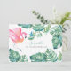 Esta ponte tropical apresenta minha mão original pintada de cor d'água rosa flamingo e folha de palma de monstera em um fundo branco nítido. Os nomes são definidos em uma moderna escrita de pincel e sans serif typografia. Personalize como quiser. A carta de proposta de casamento do estilo litoral reverte para uma cor verde-turquesa sólida. Uma carta de proposta sobre o tema da praia para perguntar à dama de honra ou anunciar seu noivado. Para ver mais designs visite DotellABelle no Zazzle. Victoria Grigaliunas é uma artista profissional na Palm Beach Florida.