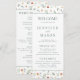Melhore o seu casamento com esses cartões refinados de casamento de cor d'água, mostrando uma elegante mistura de terracota e sotaques florais de laranja queimados em um design rústico. Apresentando delicado texto verde empoeirado, esses programas são perfeitos para um boho, jardim ou casamento inspirado no outono.