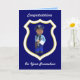 Este cartão é decorado com um oficial de polícia masculino branco de brinquedo e pode ser personalizado com uma classificação ou nome.