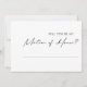 Esta moderna matrona minimalista da carta de honra é perfeita para o seu casamento clássico com o Boho. Seu design abstrato simples e único, acompanhado de sua paleta de cores preto e branco, dá a este produto uma sensação de elegância formal enquanto permanece simplista, boêmica. Mantenha-o como está ou escolha personalizá-lo com trabalho de arte ou gráficos de sua escolha. Você também pode procurar outros produtos dentro desta coleção para juntar todo o seu casamento!