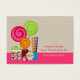 Um conjunto de 100 cartões de receita (cartões de visitas chubby) com ilustração de um pote de biscoitos, três lábios, doces de pau, um pedaço de chocolate e um cupcake. Personalize com seu nome. Escreva sua receita nas costas.