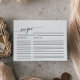 Estes elegantes cartões de receita noiva de caligrafia negra são uma forma excelente de fornecer à noiva toda a receita que ela vai precisar como nova esposa! A simples design apresenta uma carta minimalista decorada com tipografia romântica e caprichosa. A coisa excelente sobre estes cartões duplos é que há muito espaço para receitas mais longas. Simplesmente envie esses cartões de receitas de vazio com os convites de chá de panela e peça aos seus hóspedes que tragam os cartões preenchidos com eles para o chá.