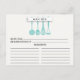 Cartões de Receita de Utensílios de Cozinha para Chá de Panela Moderno apresentando uma colher azul furada, espátula, batedeira e esmagador com um banner elegante mostrando o texto "receita" em um fundo branco. A frente do nosso cartão de receita oferece espaço para o título da receita, da cozinha de e ingredientes. Vire o nosso cartão de receita para ver as instruções, tempo de preparo e tempo total. Disponível em nossa loja em uma grande variedade de cores populares para chá de noiva. Inserção perfeita para convite de chá de noiva para abastecer a cozinha da noiva.