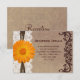 Este cartão de recepção é perfeito para qualquer casamento rústico no campo. Ele apresenta um fundo de papel vintage rústico com uma impressão de pergaminho floral ornamentado e uma renda impressa e uma fita de barbante ao lado com uma flor margarida laranja brilhante. Perfeito para qualquer casamento no campo ou celeiro. Basta adicionar os detalhes da recepção ao cartão. O barbante e a renda são apenas desenhos impressos. Não são renda ou barbante de verdade.