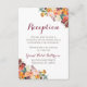 Informe seus convidados os detalhes da recepção com nossos inserts de recepção florais de outono com flores laranja, borgonha, creme e rosa. A redação é completamente personalizável - se você precisar alterar a fonte, cor da fonte, tamanho ou a colocação das caixas de texto, basta clicar no botão "Clique para personalizar ainda mais" para alterar essas coisas. Certifique-se de verificar nossa grande seleção de itens coordenados navegando pela coleção de Casamento de Flores de Outono!