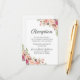 Avise seus convidados sobre seus detalhes de recepção com nossos cartões de inserção de recepção de casamento de flor rosa rústica. O texto é completamente personalizável - se você precisar alterar a fonte, a cor da fonte, o tamanho ou o posicionamento das caixas de texto, basta clicar no botão "Clique para personalizar mais" para alterar esses itens. Certifique-se de verificar nossa grande seleção de itens coordenadores navegando na coleção de Casamento Floral Rosa Russo!