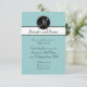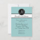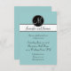 Cartões de Recepção de Casamento Simples Elegantes Monograma com fundo azul claro, inicial de monograma branco em uma etiqueta preta circular e nomes dos noivos em uma faixa preta e branca. Personalize com as informações da recepção do casamento, nomes do monograma e cores do casamento usando os prompts de menu fáceis de usar da Zazzle. Por Elke Clarke© para Monogram Gallery.