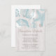 Cartões de recepção de praia (cartões de inclusão) com um design rústico e charme de madeira caiada com uma paleta de cores azul e bege, apresentando uma ilustração de contorno de conchas ao longo da parte superior. Os detalhes personalizados da recepção do seu casamento para os seus convidados são impressos em marrom e bege sobre o fundo de madeira caiada. Esses cartões de recepção de conchas são perfeitos para as celebrações do seu casamento com tema de praia. Eles são feitos para combinar com os convites de praia de madeira caiada com conchas.