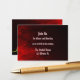 Cartões de recepção de casamento com fundo de visual gótico preto e vermelho e uma única rosa vermelha.