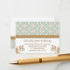 O elegante e belo barroco francês marroquino inspirou cartões de recepção de casamento com uma repetição de azuis, água pálida, padrão geométrico azulado e ouro, design e floresces florais abarrotados de ouro. Este cartão de gabinete luxo e em escala superior é perfeito para um casamento temático marroquino, árabe ou aladino. Na frente e no verso desses cartões de recepção personalizados podem ser personalizados com seus detalhes de recepção de casamento. Trabalho de arte e design © Chrissy H. Studios, LLC. Todos os Direitos Reservados.